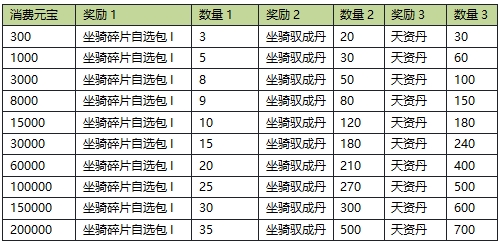 消费返利-坐骑碎片自选包+坐骑驭成丹+天资丹